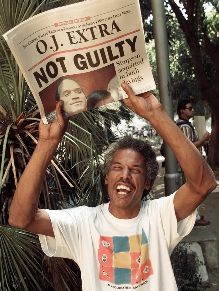 The choice of John Cochram - who had previously represented some victims of police brutality during the Rodney King uprising and Black Panther Party political detainee Geronimo Pratt - as the lead attorney in OJ's legal pool, made clear how the defense's line was to make the double-murder charge against OJ a prime example of police racism. On the one hand, this approach rested on the specific accusation of racism and manipulation of evidence against investigator Mark Fuhrman, who had found the infamous bloody gloves at the crime scene: the defense played a series of recordings in court, where the officer used heavily racist language and suggested that, in the face of manifest guilt, evidence somehow pops up. On the other hand, there was also no need for evidence to support that argument: the materiality of the lived experience of black people in the United States was enough. It is in this sense that the widespread support for OJ by the African American community should be framed, as taking a stance on a specific issue on the basis of an overall and deeply biographical social trend: besides, «what is reasonable to a black person may not be reasonable to a white person, especially in matters involving the police»[19]. This support, of course, should not be overstated and should always be understood through the lens of gender and class inequalities: for example, Ellie Bulkin and Becky Thompson pointed[20] out how, during the Simpson trial, the opinion of Black women was sought as women or as Blacks, never as a whole; as if they had to choose which side to support, crushed by the blackmail of complexity flattening.