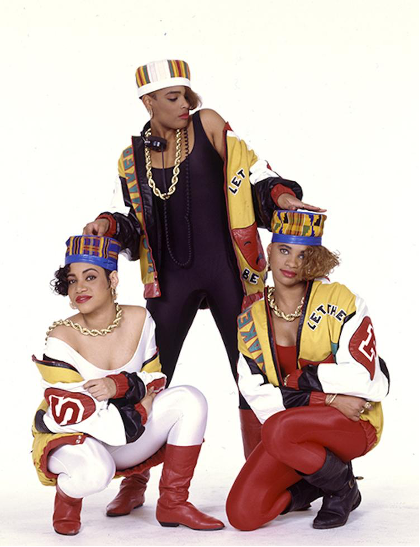 It started on a local level, with pioneering designers like Dapper Dan, who opened in 1982 the first hip hop shop in Harlem. This store showcased what became known as “logo mania”, a fashion trend that combined large logo versions of high fashion brands such as Gucci or Louis Vuitton with streetwear design from hip hop culture. At the same time, the well-known rap group Run Dmc signed a partnership with Adidas. Their commercial song My Adidas, embodied the streetwear trend by making the jogging and the Adidas Superstar their trademarks. Hip hop fashion was thus plural, oscillating between the amplitude of streetwear and the colourful influences of West Africa[10], with Kente fabric caps, flashy trousers and extra large jewelries.