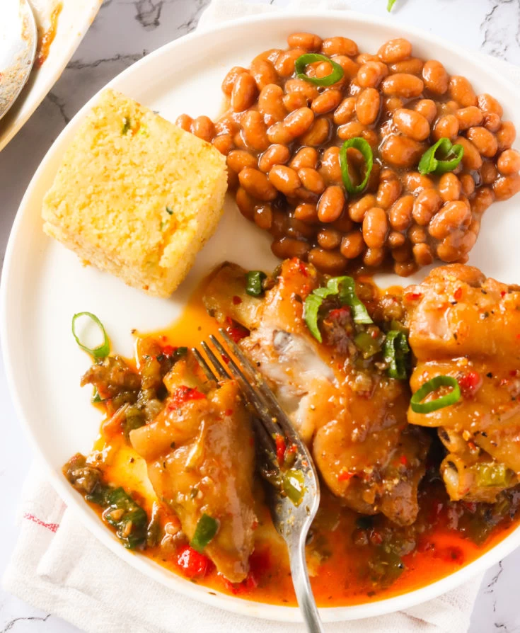 Pigs feet trace back to the slave period. In a similar story to that of fried chicken, these are pork scraps that were once reserved for slaves on the plantations. This dish was mainly prepared during holidays or Sundays due to the long cooking time required. For the same reason, pigs feet remain a home dish rather than a restaurant one and are usually served with a side dish of beans and some cornbread.