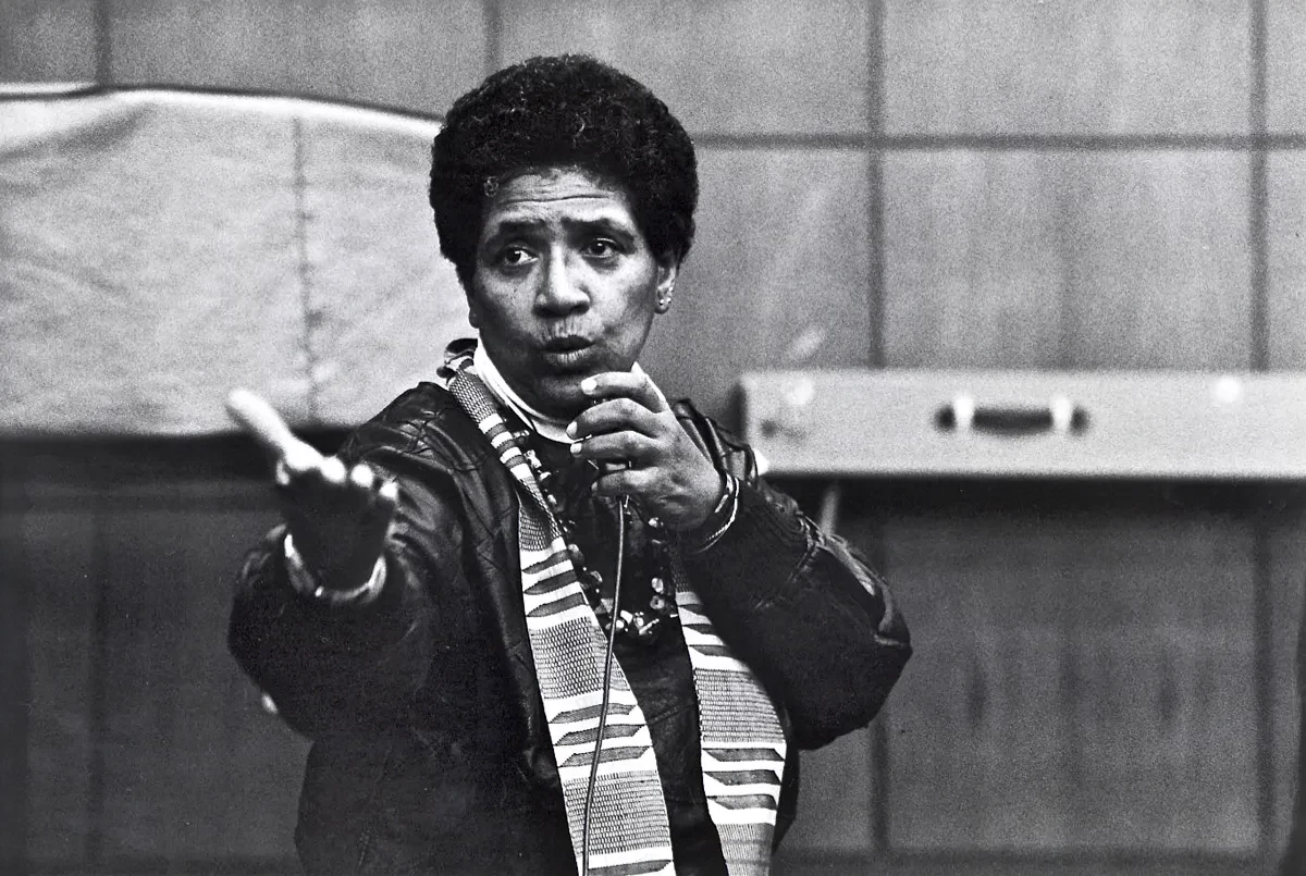 Audre Lorde tiene una lezione agli studenti dell'Atlantic Center for the Arts. 1983. New Smyrna Beach, Florida. (Robert Alexander / Getty Images)